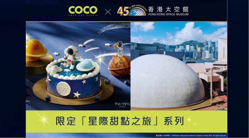 In a dazzling new collaboration, COCO, the acclaimed patisserie at The Mira Hong Kong, and the Hong Kong Space Museum, present an interstellar culinary adventure in celebration of the museum’s 45th anniversary. Drawing inspiration from the wonders of the Universe, the COCO’s pastry team has crafted a limited-edition collection of space-themed cakes and pastries that merge gastronomy with astronomy.